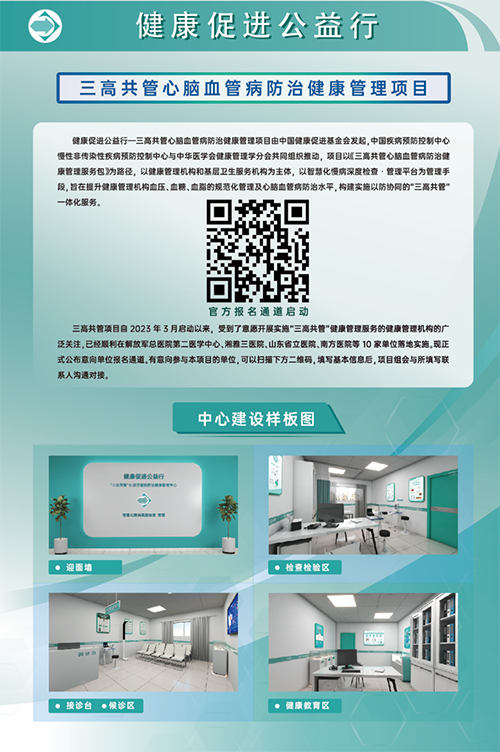 三高共管心腦血管病防治健康管理項(xiàng)目由中國健康促進(jìn)基金會發(fā)起,中國疾病預(yù)防控制中心慢性非傳染性疾病預(yù)防控制中心與中華醫(yī)學(xué)會健康管理學(xué)分會共同組織推動,項(xiàng)目以《三高共管心腦血管病防治健康管理服務(wù)包》為路徑,以健康管理機(jī)構(gòu)和基層衛(wèi)生服務(wù)機(jī)構(gòu)為主體,以智慧化慢病深度檢查·管理平臺為管理手段,旨在提升健康管理機(jī)構(gòu)血壓、血糖、血脂的規(guī)范化管理及心腦血管病防治水平,構(gòu)建實(shí)施以防協(xié)同的“三高共管一體化服務(wù)。
